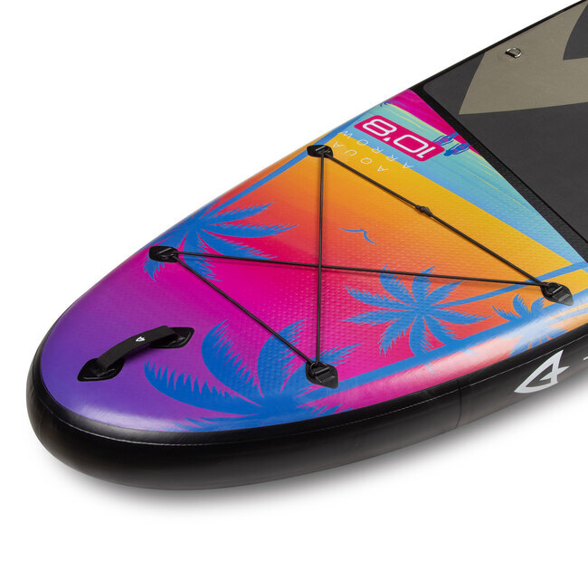 Надувная доска для серфинга Aqua Arrow 10.8 ART Sunset — отличный выбор для всех, кто любит активный отдых на воде. Она подходит как для новичков, так и для опытных спортсменов.