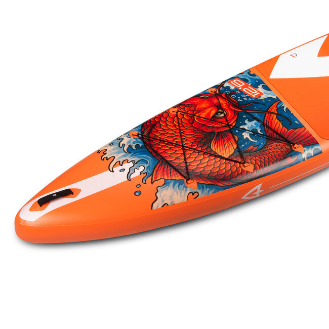 Надувная доска для серфинга Aqua Arrow 12.6 ART Carp — это универсальная надувная доска для гребли, созданная для тех, кто ценит скорость, прямолинейность хода и исключительную стабильность. Ее удлиненный форм-фактор делает ее идеальным выбором для длительных прогулок, фитнес-тренировок, турингов и гребли в одиночку или с небольшим грузом. Благодаря технологии тканевого плетения и жесткости до 12-15 PSI, вы получаете надежный контроль и ощущение серфовой доски.